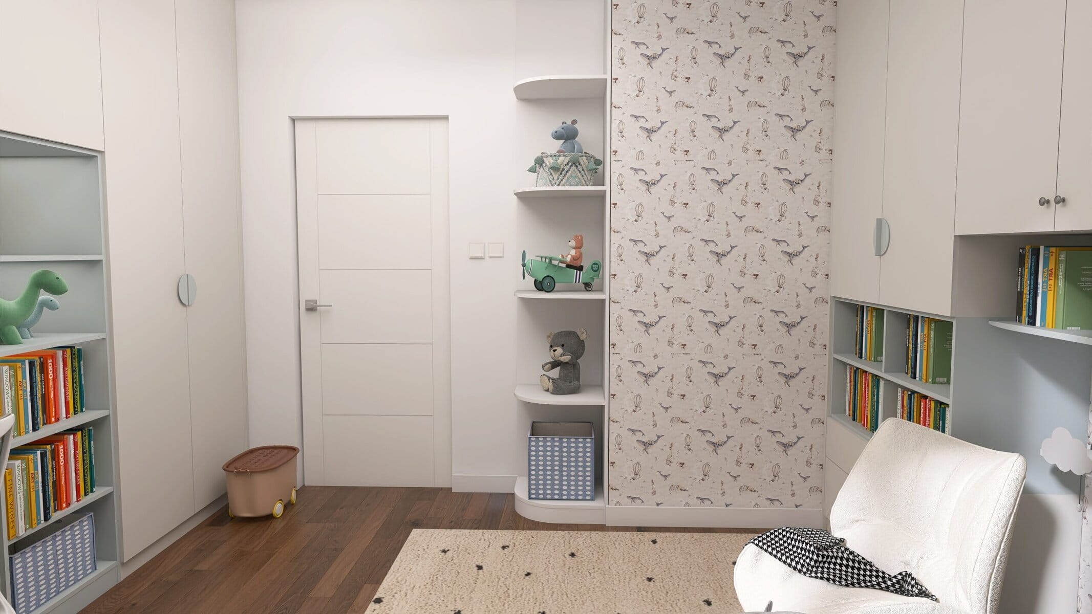 Ten pokój to wyjątkowy projekt, ponieważ wcześniej pełnił funkcję… kuchni. Dzięki zaufaniu Inwestorów oraz kompletnemu przeprojektowaniu udało się stworzyć nowoczesną, wygodną i w pełni dopasowaną do dziecka przestrzeń, w której każda strefa ma swoje konkretne zadanie.