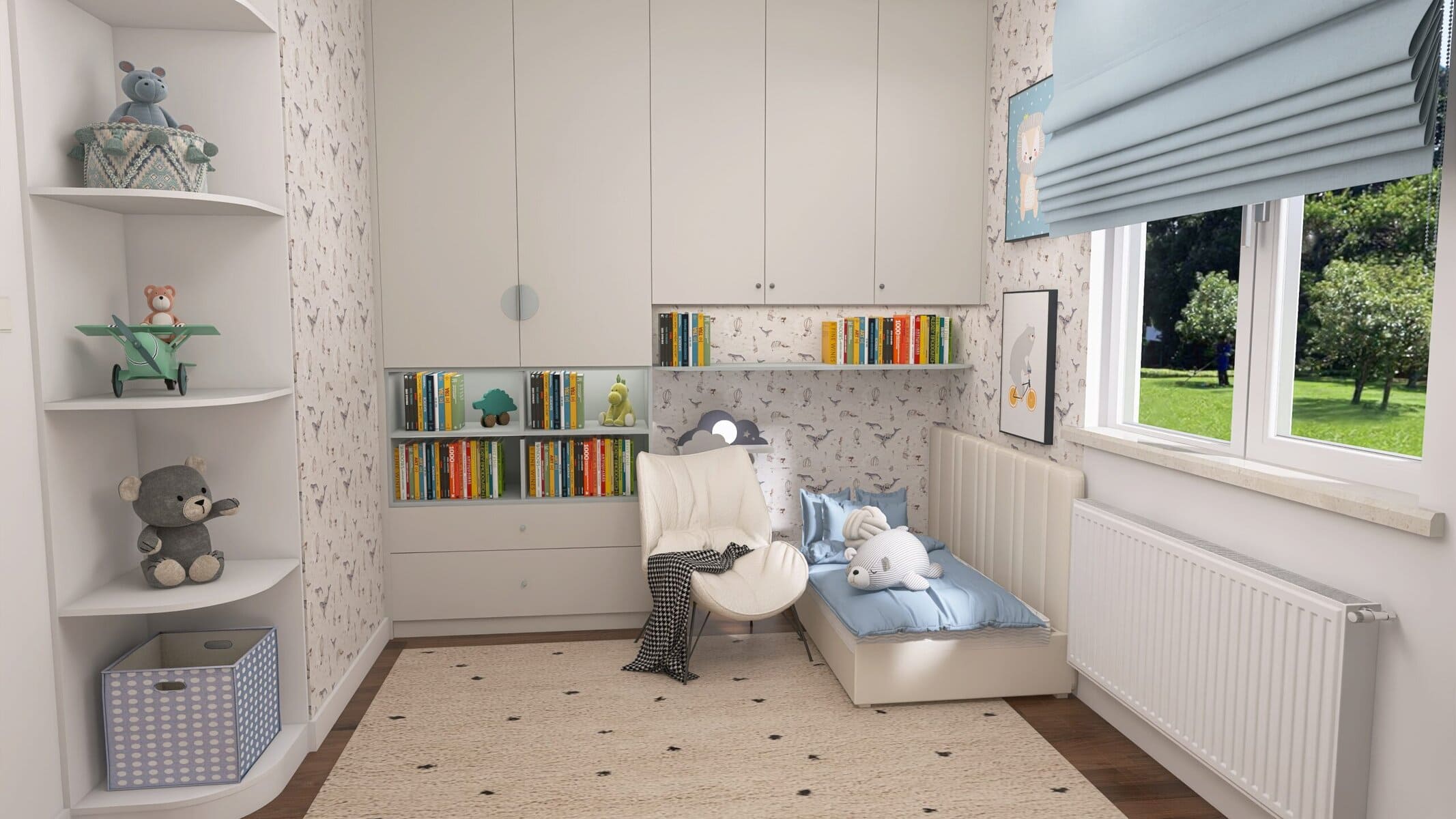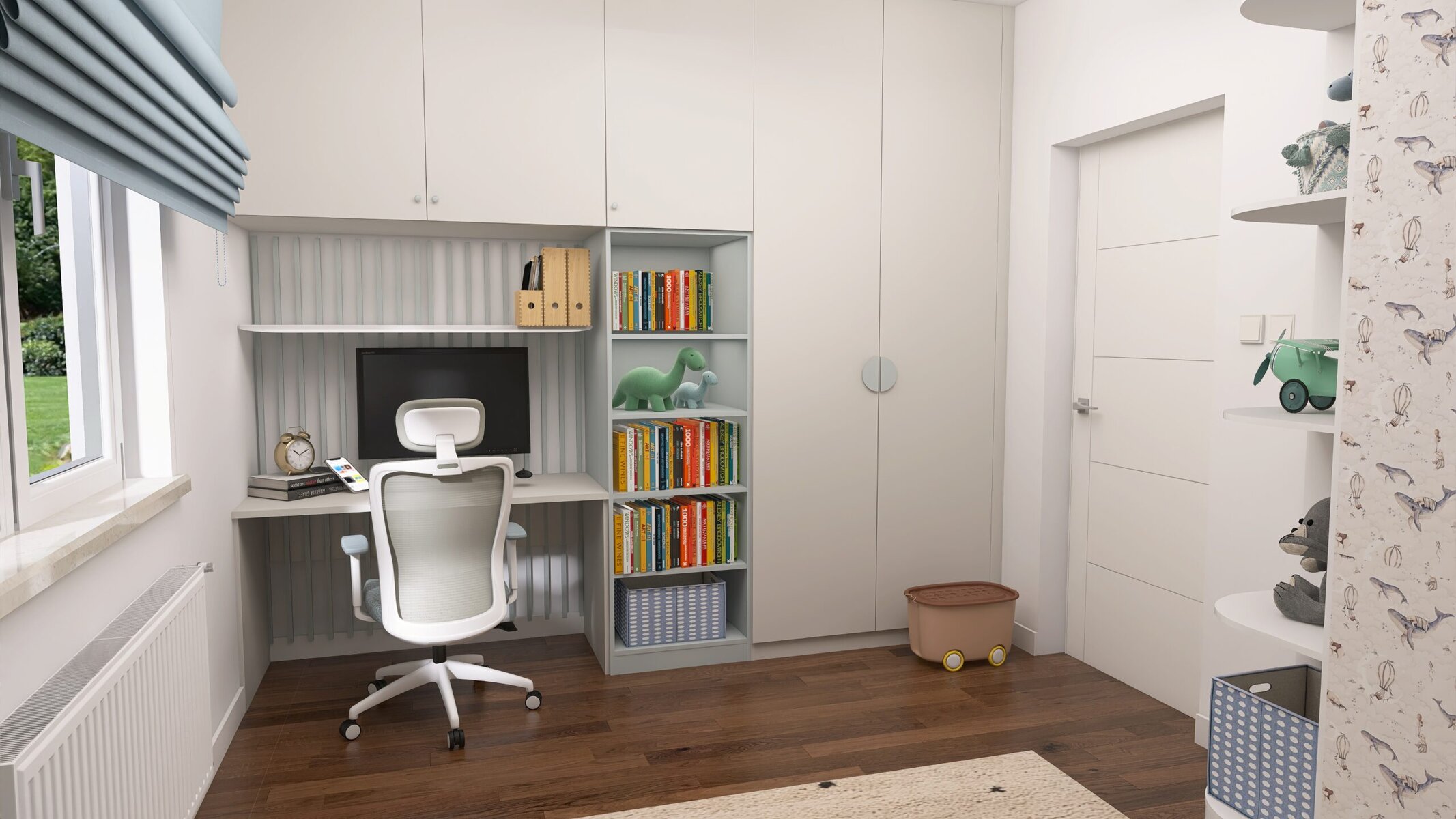 Projekt został zaplanowany tak, aby w przyszłości można było łatwo dostosować go do zmieniających się potrzeb dziecka – od wieku przedszkolnego po szkolny. Modularna zabudowa, ponadczasowa kolorystyka i ergonomiczne rozwiązania pozwalają na wieloletnie użytkowanie bez konieczności dużych zmian.